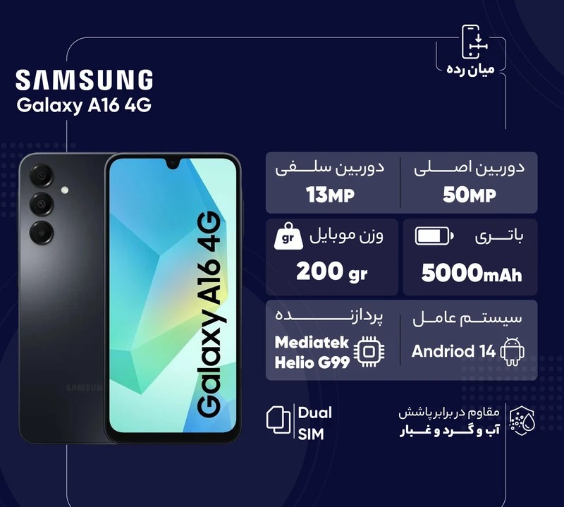 گوشی موبایل سامسونگ مدل Galaxy A16 4G دو سیم کارت ظرفیت 256 گیگابایت و رم 8 گیگابایت - ویتنام